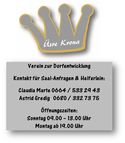 Um den Betrieb am Leben zu erhalten, sind wir auf Helferlein angewiesen, die Spaß haben am Schank- und Servicebetrieb in einem Dorfgasthaus. Natürlich sind wir auch sehr erfreut über jedes Mitglied bei unserem Verein, das ebenfalls zum Fortbestehen unseres Dorfgasthauses beiträgt. Unser Krona-Saal darf auch für private Veranstaltungen (Geburtstage etc.) gemietet werden.